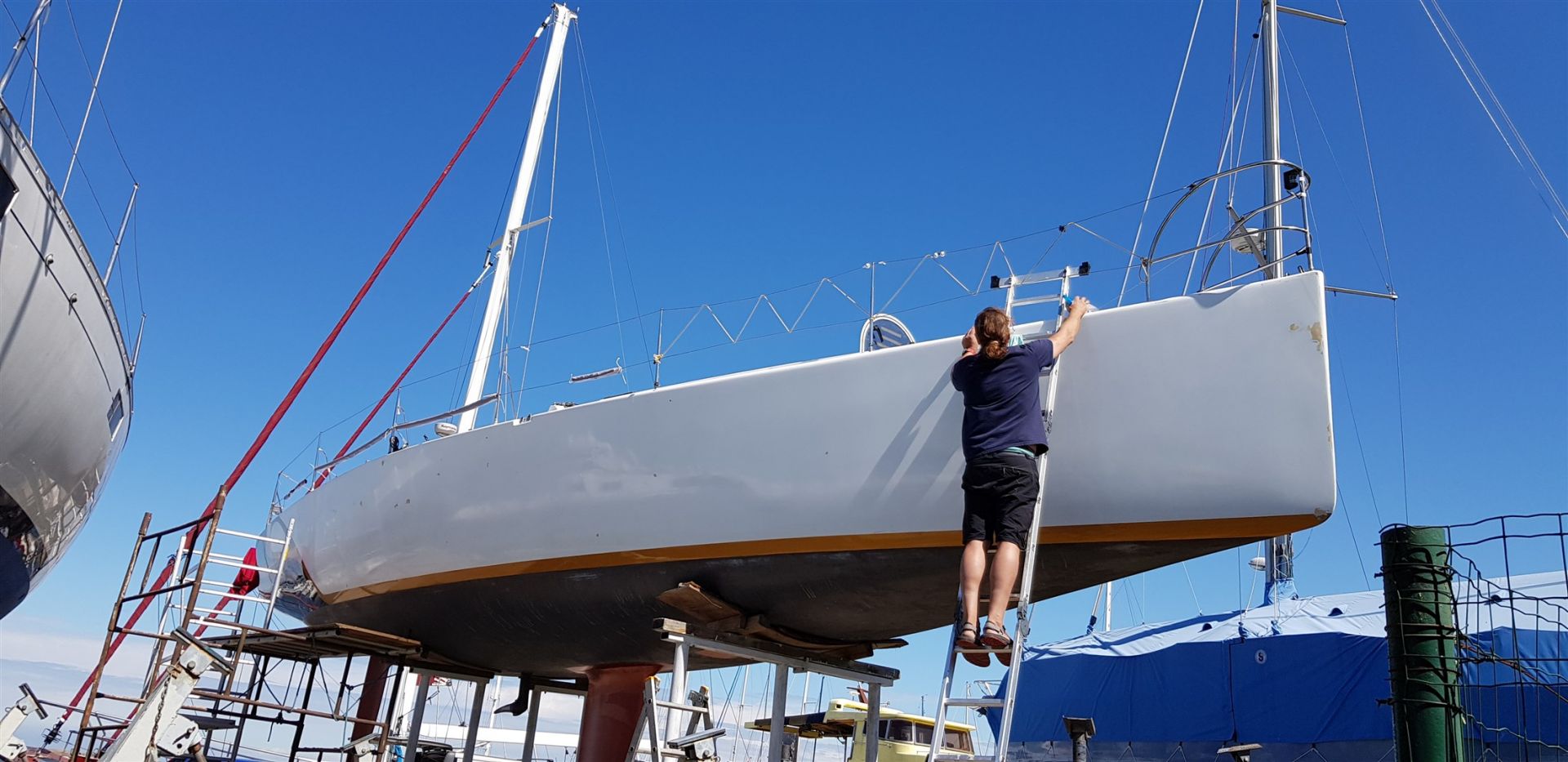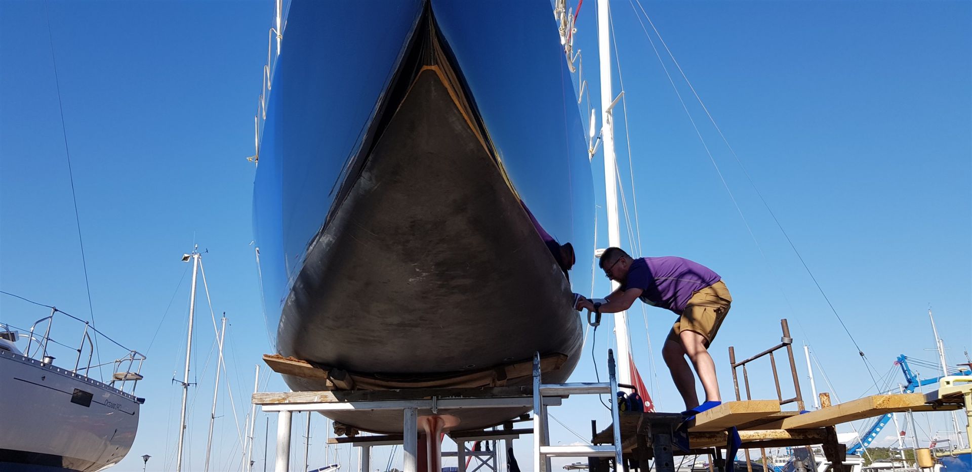 Jedną z naszych specjalizacji jest oklejanie jachtów i łodzi. W naszych projektach stosujemy najlepsze materiały wiodących światowych producentów, kierując się ich zaleceniami. Jesteśmy z nimi w stałym kontakcie. Naszą pracę wykonujemy rzetelnie. Krok po kroku informujemy klienta o naszych działaniach, celach i finalnym efekcie jakiego może oczekiwać. Nie ukrywamy również mankamentów i ograniczeń wynikających z zastosowanych rozwiązań.